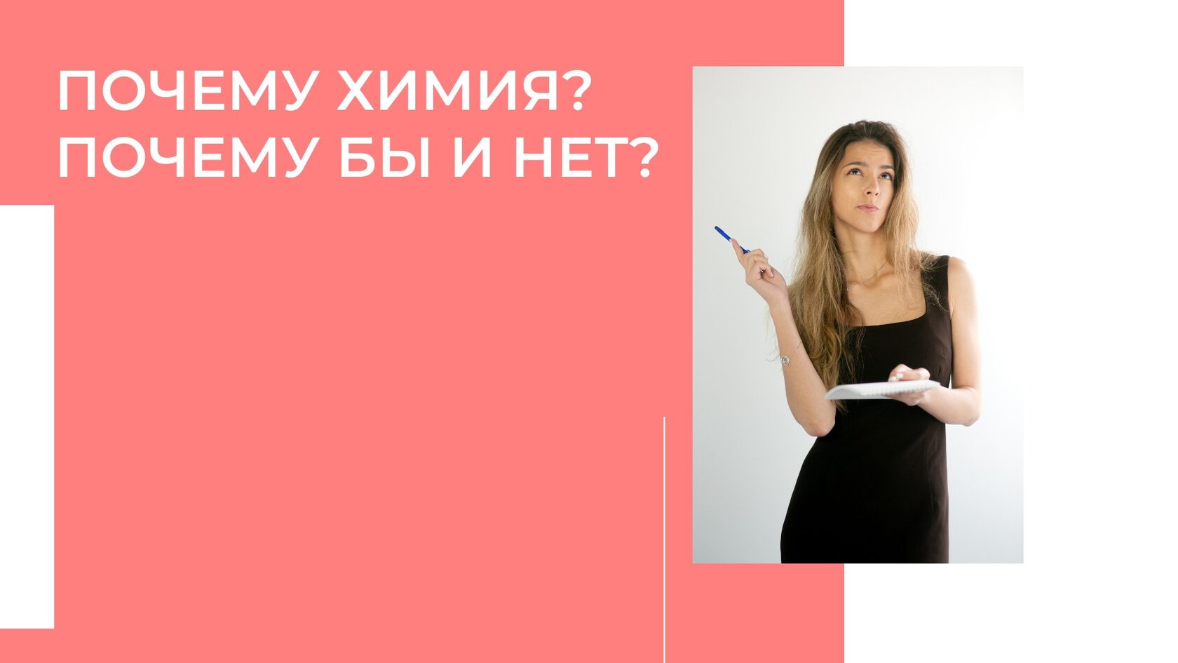 Когда меня спрашивают: "Почему химия?", я отвечаю: "Ну а почему бы и нет?". Логично, правда? Интересный предмет, нужный и врачам, и обычным людям, ведь химия окружает нас повсюду. Жалко, что ее не все могут объяснить так, чтобы не напугать при этом сложными формулами и задачами. Так почему бы мне это не исправить?))